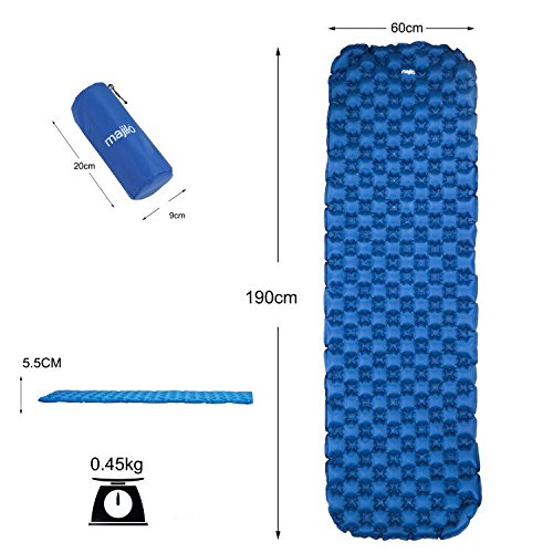 寝袋マット エアーマット エアーベッド アウトドア コンパクト パッド テント泊 超軽量 ソロキャンプ エアベッド ル 5.5cm 防水 防湿 防寒 厚く丈夫 20Dナイロン&TPU (ブルー)