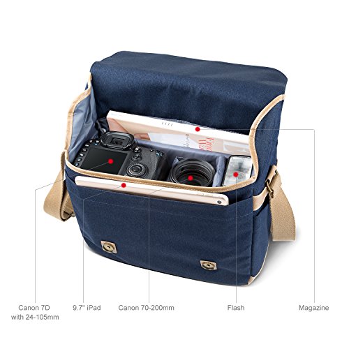 ブランド / Beschoi カラー / ブルー サイズ / 33cm × 14cm × 25cm 材質 / ポリエステル&レザー〈摩擦に強い,耐久性に優れた防水料〉 重さ / 0.66kg 対応機種 / EOS 60D,EOS Kiss × 6i,EOS Kiss × 5,ニコンD7000,ニコンD5100,Nikon 1 J1,Canon EOS Kiss × 7,Canon EOS 80D,Nicon D500 など