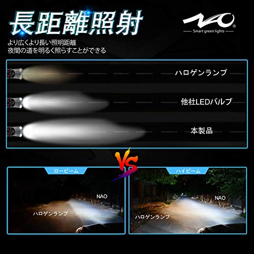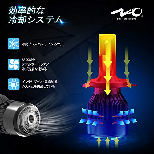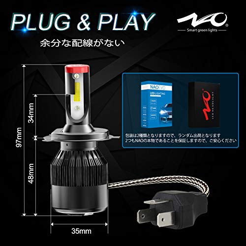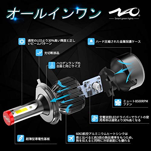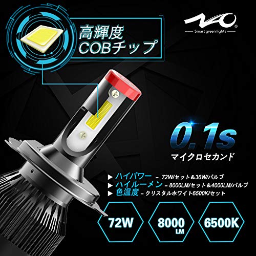 「NAO」車用 h4 led ヘッドライト 車検対応 Hi/Lo切替 バルブ 一体型 12V専用 車検対応H4 LED バルブ 72W(36×2) 8000LM(4000LM×2) 72W 8000LM 防水 1年間保証付き 2本セット ホワイト