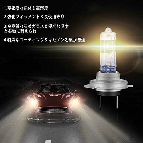 AGPTEK H7 ハロゲンバルブ 超高輝度 ヘッドライト 高品質 フォグランプ 切替 車検 3500K 12V 55W 国産車/輸入車&車検対応 2個入り PH07S(光色:ホワイト)