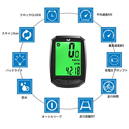 サイクルコンピューター 自転車コンピューター サイクルメーター ケイデンス ワイヤレス 防水 多機能 簡単取付 バックライト 走行距離計 走行時間計 ブラック