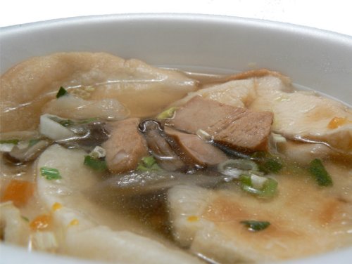 せんべい汁は醤油味をベースにした汁物でゴボウやネギなどの野菜やキノコ、そして肉などの具材が入っているものが一般的です。そしてこの汁にせんべいを投入します。せんべいの絶妙な食感と素朴な味が醤油ベースの味とふんだんな具材との相性がばっちりです。