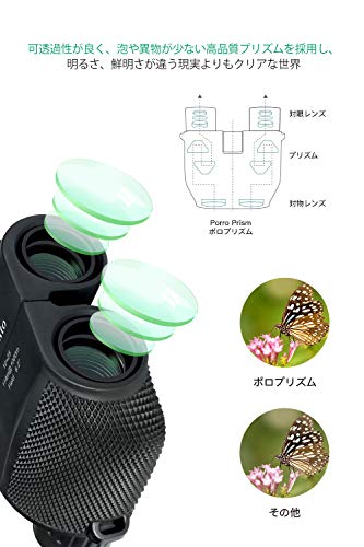 Nikatto 双眼鏡 10×25は高透過率のレンズを使っているので、対象物がより見やすくなっています。その見やすさは他の双眼鏡と比べると非常によく分かり、どれぐらい差があるかも確認できます。それぞれの双眼鏡によって見やすさも変わっているので、そこは充分に気を付けましょう。少しでも見やすさを重視したい人は実際にNikatto 双眼鏡 10×25を使うと良いでしょう。