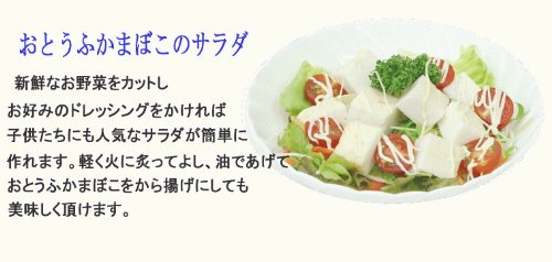 名産のかまぼこに、豆腐と玉ねぎを加えて作っているおとうふかまぼこ。崩れやすいこともなく、水に浸かっていることもなく、かまぼこと同様に固形を維持しています。それぞれの材料の味が合わさった柔らかな歯ごたえがあり、おでんや煮ものや刺身など、色んな料理に向いています。