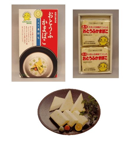 マグロの水揚げ高や、かまぼこなど練り物生産が日本一なのが塩釜市の塩釜港。ここで誕生した、豆腐とかまぼこを組み合わせて作った食べ物が、おとうふかまぼこです。元祖は創業昭和47年、塩釜港に面した場所の直江商店です。平成6年には農林水産大臣賞を受賞しています。