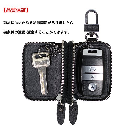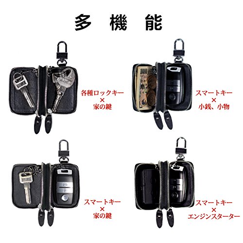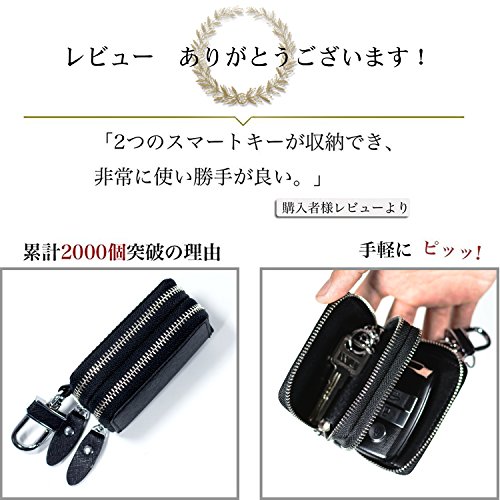 ダブルファスナーを採用していて、二本同時にスマートキーを収納する事が出来る収納力抜群のキーケースになります。車や家の鍵以外にも小銭やお札も問題なく収納でき、持ち歩ける利便性も備わっています。素材には高品質なレザーを採用していますので、見た目も高級感溢れるスタイリッシュなデザインのキーケースになり、防水性や防塵性や耐用性にも優れています。
