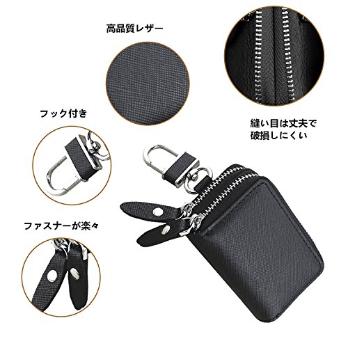 スマートキーを収納する事ができ、ファスナー付きになりますのでしっかりと安全に持ち運ぶ事が可能です。鍵が落ちにくいホルダータイプのフックが計六つ付いていますので安全に種類の異なる鍵を持ち運ぶ事が出来るキーケースなります。鍵のみならず、カード入れも計三つ備わっているキーケースになりますのでSuicaやクレジットカードも持ち歩く事ができ便利に活用する事が出来ます。