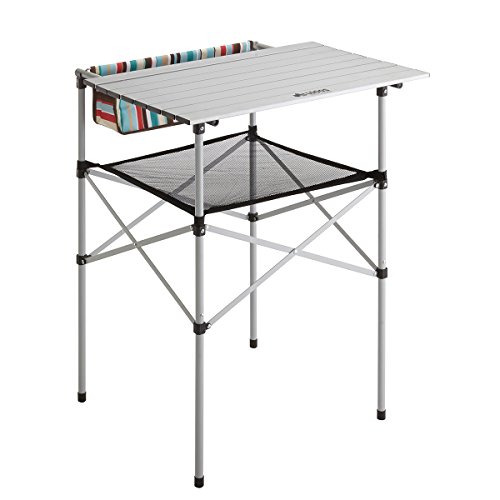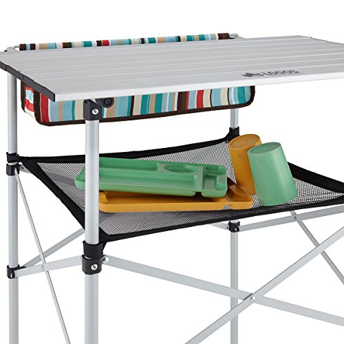 アルミニウムのポールを使った、コストパフォーマンスの高いキッチンテーブルです。アルミニウム素材を採用しているので重量約4.5kgとかなり軽量タイプです。少し気になるのが、バーナースタンドが作業台よりも高くなっているところは、使い勝手に少し問題があるかも。天板下に収納もありますので、そこはとても便利です。