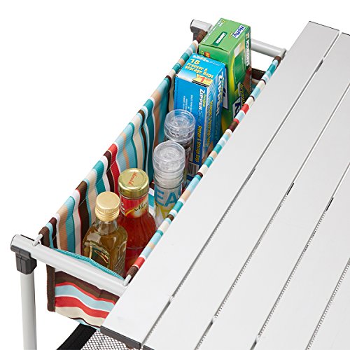 デザインもシンプルで、付属するパーツは全て天板に収納できますし、天板も半分に折りたためるのでかなりコンパクトサイズに収納することができます。収納ケースも付いていますので持ち運びも組み立て&撤収も簡単にできます。トータル的にもバランス良く機能性も高くおすすめのオールインワンキッチンテーブルです。