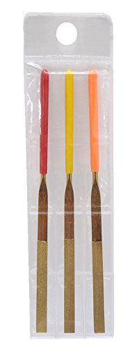 こちらはダイヤモンドヤスリの3本セットです。ダイヤモンドヤスリは砥粒によってヤスリの目の粗さが変わるもので、このセットは「#180、#240、#360」のセットになっています。