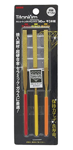 DIYをしているとふと必要になるダイヤモンドヤスリは百円均一などにも売っていますが、砥粒のコーティングが甘くてすぐにダメになってしまいます。このヤスリはチタンコーティングによって、強固に砥粒を付着させているので長持ちします。