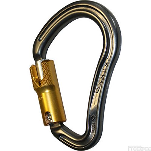大きな開口部が特徴的なHMS型ロッキングカラビナ。強度は30kNを誇り 汎用性に優れています。