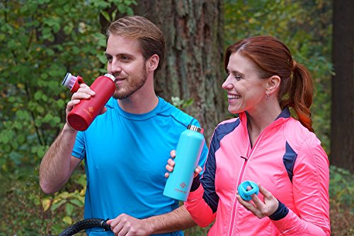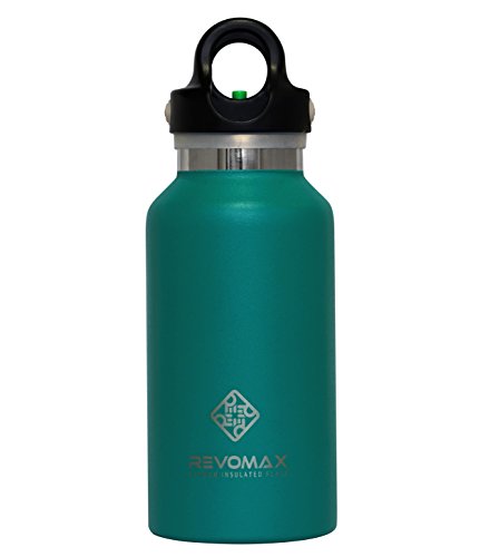 RevoMax おしゃれ ウォーターボトル Water Bottle 真空断熱 ステンレス 魔法瓶 今までに無かった蓋ワンタッチ開閉式! アメリカで大人気! (12OZ(355ml), Glacier Cyan)