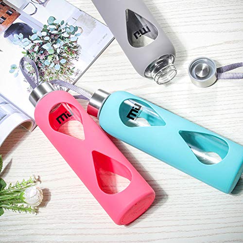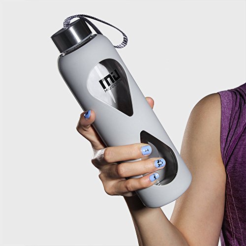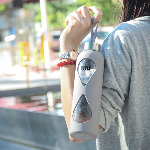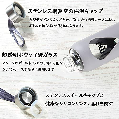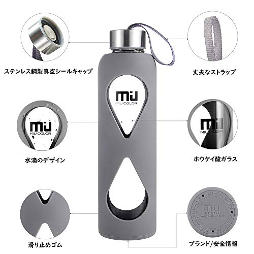 MIU COLOR 水筒 ボトル ガラス水筒 マグボトル 550ML 透明 おしゃれ カバー付き 運動会社各場所用(グレー)