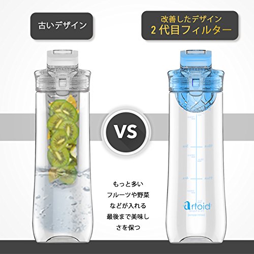 Artoid 800ml フルーツ ウォーターボトル 時間マーカー フィルター付き 直飲み プラスチック 目盛り デトックス BPAフリー
