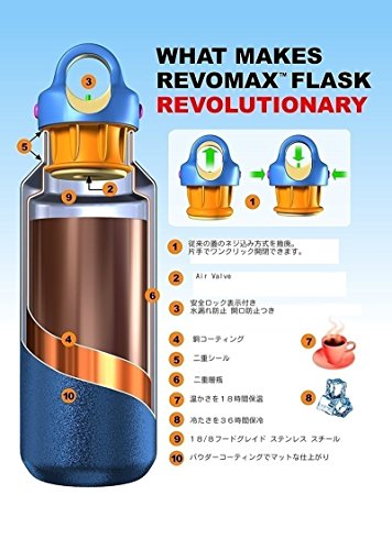 出典: https://www.amazon.co.jp/RevoMax-%E3%82%A6%E3%82%A9%E3%83%BC%E3%82%BF%E3%83%BC%E3%83%9C%E3%83%88%E3%83%AB-Bottle-%E4%BB%8A%E3%81%BE%E3%81%A7%E3%81%AB%E7%84%A1%E3%81%8B%E3%81%A3%E3%81%9F%E8%93%8B%E3%83%AF%E3%83%B3%E3%82%BF%E3%83%83%E3%83%81%E9%96%8B%E9%96%89%E5%BC%8F%EF%BC%81-%E3%82%A2%E3%83%A1%E3%83%AA%E3%82%AB%E3%81%A7%E5%A4%A7%E4%BA%BA%E6%B0%97/dp/B01MTATQ57/ref=sr_1_51_sspa?ie=UTF8&qid=1528349757&sr=8-51-spons&keywords=%E3%82%A6%E3%82%A9%E3%83%BC%E3%82%BF%E3%83%BC%E3%83%9C%E3%83%88%E3%83%AB%E3%80%80&th=1何回か使った後の感想です。 一番心配していた密閉性については申し分なく、簡単な開閉方法にもかかわらず、横にしてもなんにしてもこぼれません。 車の既製のドリンクホルダーにもぴったりはまるところも、満足度が高いポイントです。 見た目がはっきりしたグリーンで目を惹く色なのも気に入ってます。また保温効果も、何時間置いてもあったかい紅茶が飲め、自分としては十分です。小さいのも買おうか迷い中です。