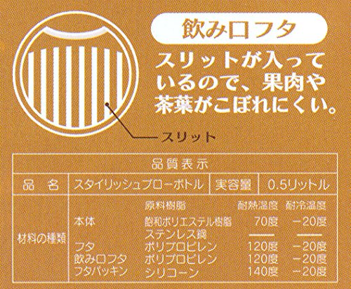 果物や果肉を入れて手軽に作れるフレーバーウォーターに最適です。飲み口フタにスリットが入っているので果肉や茶葉がこぼれにくい、フタを開けてすぐ飲める直飲みタイプ