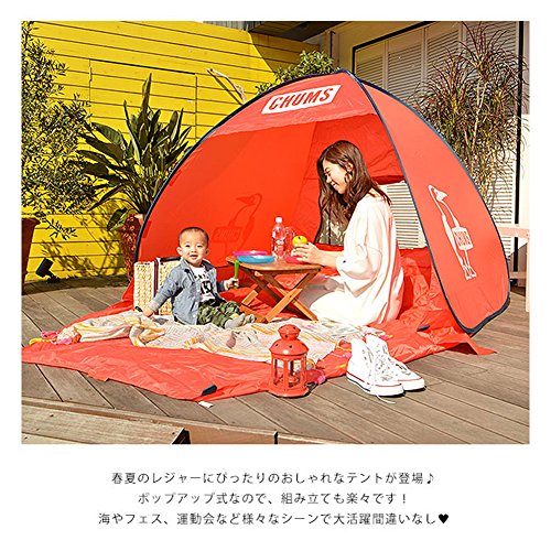 チャムスは様々な種類のテントを販売中、その中のテントの1つがポップアップテントです。ポップアップテントは設営・撤収が簡単に行えるテントになります。袋から出すだけですぐにテントを設営でき、収納は説明書通りに従って折りたためばすぐ収納できるのが特徴的です。ブービーバードのロゴも入っていて可愛らしいポップな感じでデザイン性にも優れたテントとなっています。