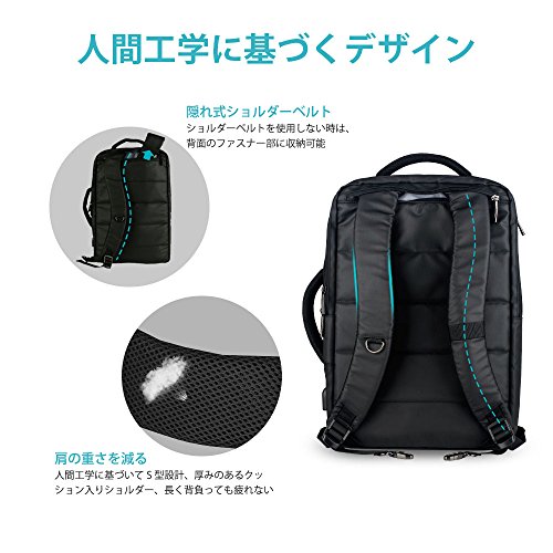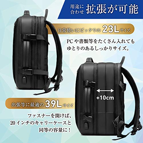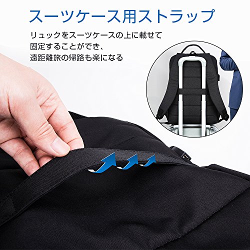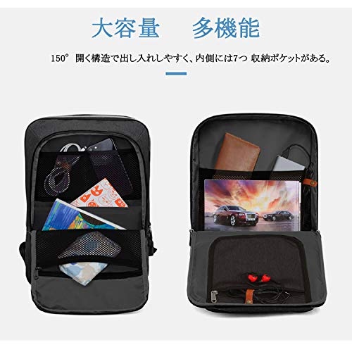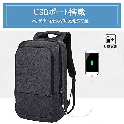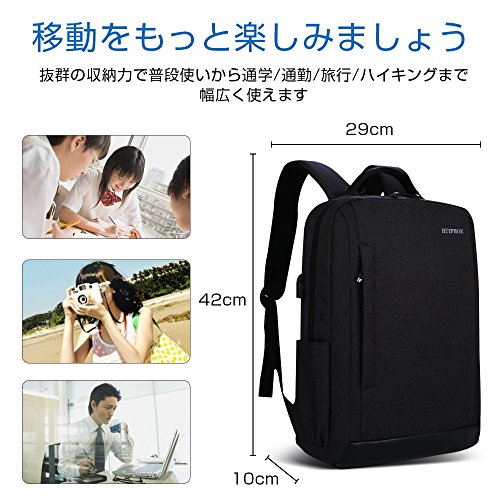 Widespace ビジネス リュック メンズ 大容量 防水 15インチPCバッグ 通勤 通学 出張 盗難防止 USB充電ポート搭載 ブラック