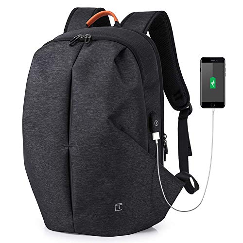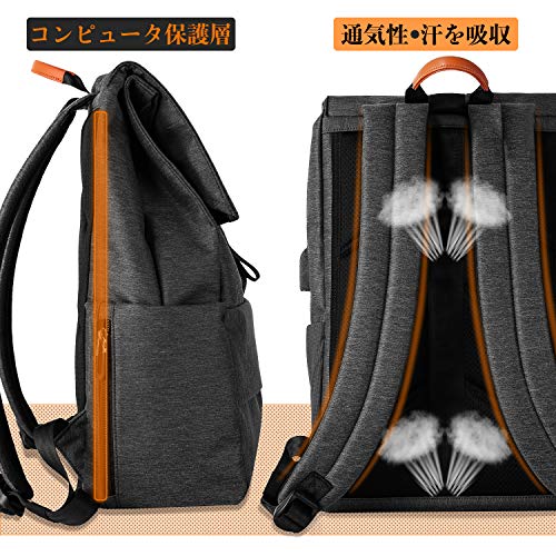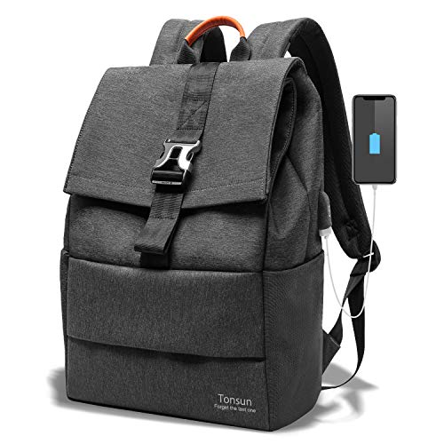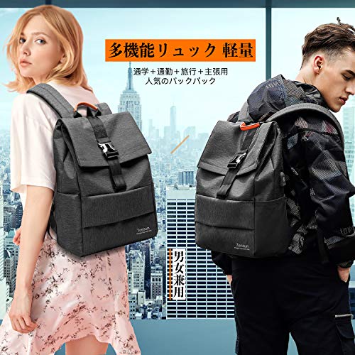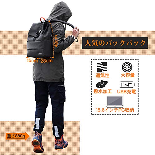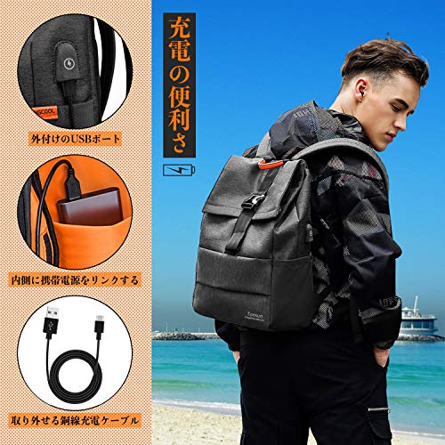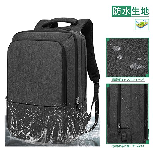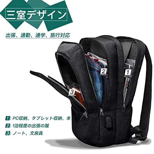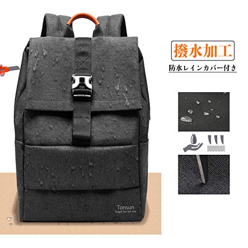 PC通勤通学ビジネスリュック デイパック ラップトップバックパック カジュアル ユニセックス USB充電ポートと防水レインカバー付き Tonsun (ブラック)