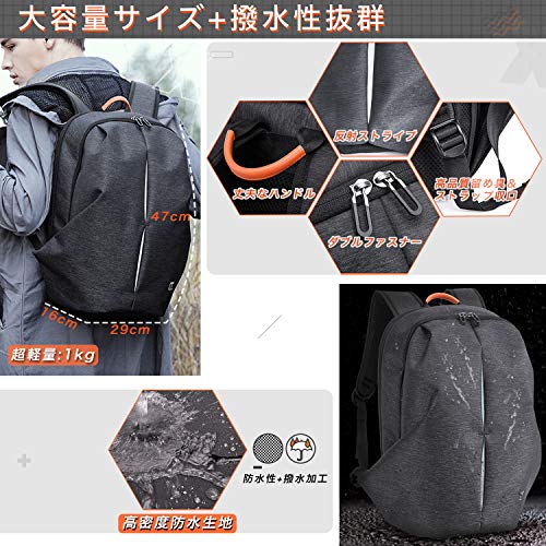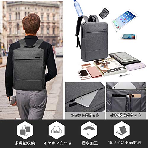 リュックサック ビジネスリュック メンズ PCバッグ 大容量 15.6インチ 防水 USB充電ポート 盗難防止 高耐久性 パソコンバッグ 高校生 通勤 通学 旅行用 デイパック おしゃれ 軽量 男女兼用 (グレー)