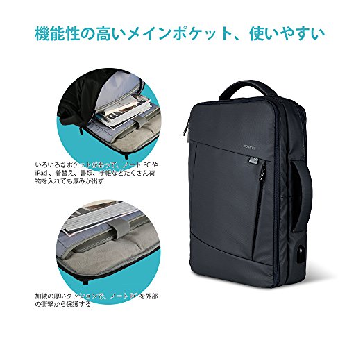 ビジネス リュック バッグ 3WAY 手提げ ROMOSS USB 充電ポート PCパソコン バックパック メンズ レディース 通勤 出張 多機能 BP01 Black