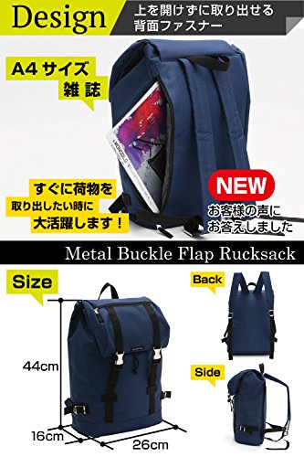 snipping メタルバックル リュックサック 【ポケット改良版】リュック メンズ レディース 学生 通勤 通学 (ブラック)