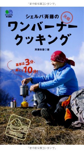 シェルパ斉藤さんの本、ワンバーナー簡単クッキングは料理ができない人のための料理本です。登山やソロキャンプなど、いつもインスタントラーメンしか食べてない方にこそ、読んでいただきたい本です。料理ができない人のための料理本なので、レシピは大まか。作り方も、ザ男の料理といった感じです。ワンバーナークッキングに必要な道具の紹介や、シェルパ斉藤さんだけでなく、多彩なゲストがとっておきのレシピをご紹介しています。読んでいるとこの本を片手に、キャンプやトレッキングに行きたくなる、そんな役に立つ面白い本です。表紙の斉藤家のアイドル、ニホ、サンポ、トッポの姿がかわいい。