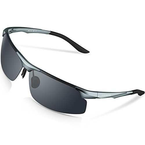Torege 偏光レンズ スポーツサングラス 超軽量 アルミニウム・マグネシウム合金 フレーム M294 (シルバー&グレー)