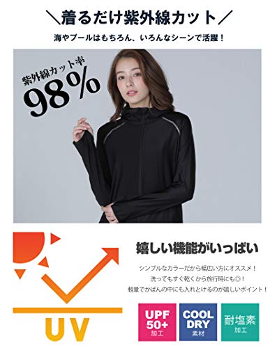 ラッシュガード レディース 長袖 水着体型カバー用 紫外線カット率99.9%以上 S M L 2L 黒 露出控えめ