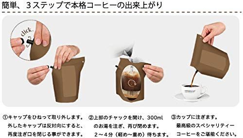 もっと手軽においしいコーヒーが楽しみたいあなたにおすすめ。淹れ方も簡単で、ポットから容器へ、熱々のお湯を注ぐだけ。インスタントコーヒーのような手軽さで本物のコーヒーの味が楽しめます。持ち運びにも便利で、ソロキャンプやソロツーリングにぴったり。コーヒーだけでなく紅茶やハーブティーのシリーズもあります。その種類の豊富さと手軽さから人気のシリーズです。価格は3パックで1,200円程度です。