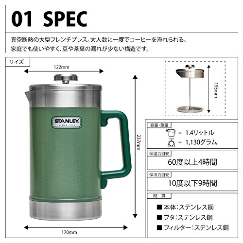 STANLEY(スタンレー) 真空フレンチプレス 1.4L グリーン 02888-002 (日本正規品)