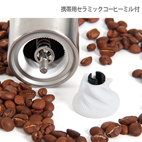 おいしいコーヒーの淹れ方のコツは、新鮮なコーヒー粉を使うこと。いつでもどこでも美味しいコーヒーが飲みたい、そんなあなたにおすすめなのがポーレックスのコーヒーミルです。コンパクトに折りたためる上機能性も高く、アウトドアではもちろんですがご家庭でも使えます。パーコレーター用の粗挽きから、エスプレッソ用の細挽きまで調節できます。コンパクトなのでソロキャンはもちろんソロツーリングにもおすすめ。1回で挽ける量はドリップ式で二杯分までです。価格は6,000円程度です。