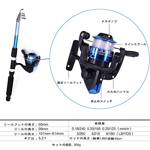 釣り竿 釣具1.8m 釣り竿 ロッド スピニングリール セット 高級感抜群 コンパクトロッド 海釣り 入門 セット海釣り・淡水両用