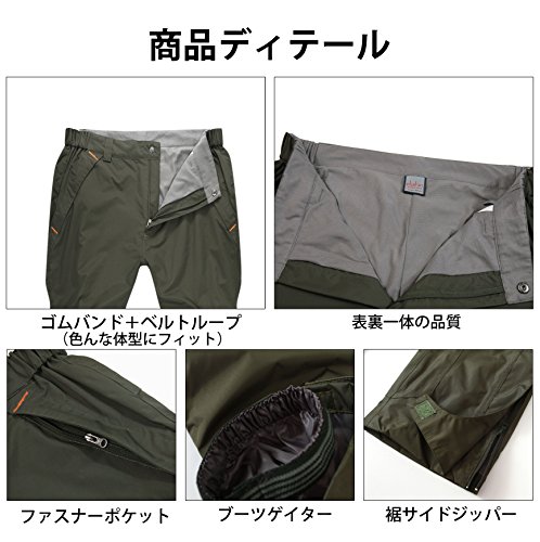 おしゃれなカラーが計6色揃っている耐水圧25000mmと超強力な防水性を持っていて、メンズやレディース性別関係なく、登山や釣りなどのアウトドア環境をはじめ、タウンユースでも屋外の雨天時の作業や、雨天の通勤通学時などに雨具として履く事が可能です。
