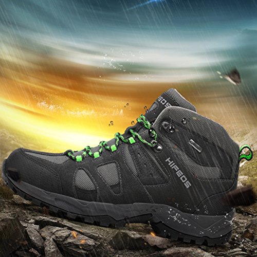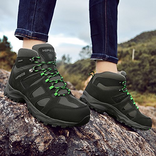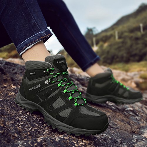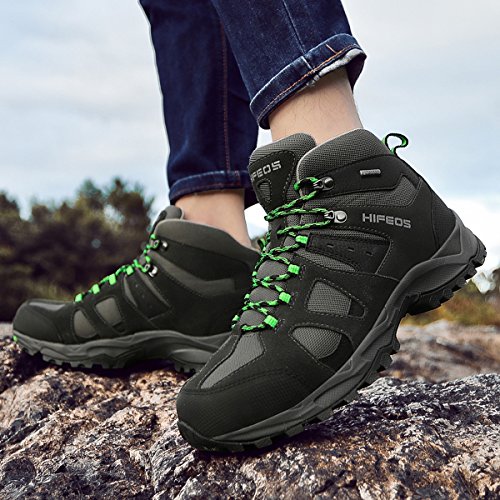 [HIFEOS]トレッキングシューズ メンズ レディース 防水 ハイカット 大きいサイズ 幅広 ダイヤル 防滑/登山靴/通気性/ 耐磨耗/衝撃吸収/軽量 アウトドア/ハイキング/山歩き/里歩き/登山道/ グリーン/ブラック 27.0cm