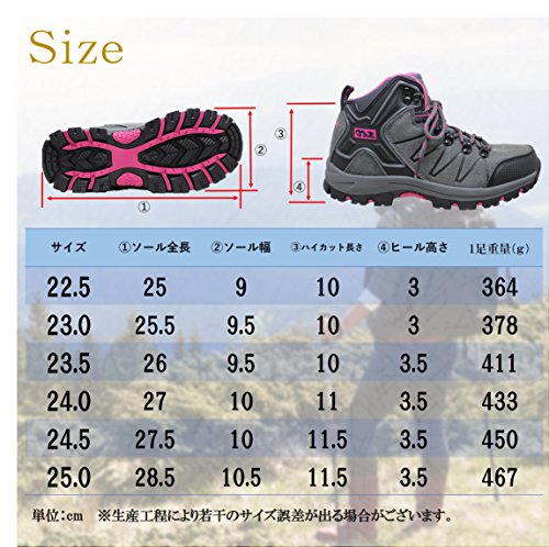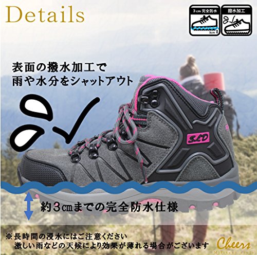 Cheers 衝撃吸収 インソール 付き トレッキングシューズ 男女兼用 滑りにくい ハイカット 登山靴 (22.5, グレー&ピンク)