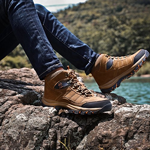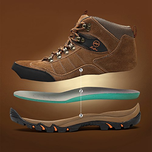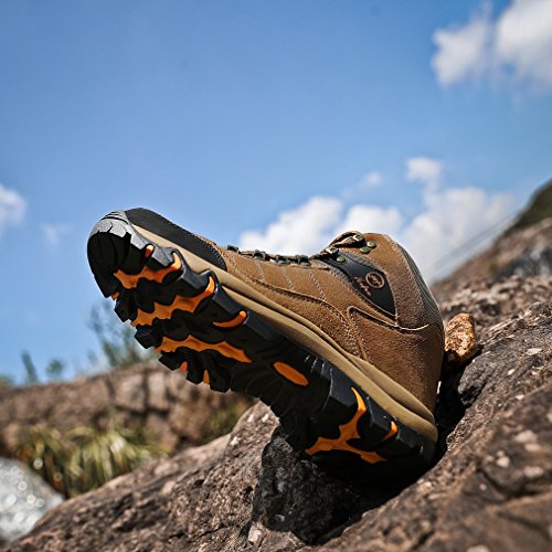 [HSFEO]ハイカットトレッキングシューズ メンズ レディース マゼンタ/グレー/グリーン/ブラウン 23.0-27.5 軽防水 クッション 滑らず 透湿性 耐磨耗 衝撃吸収 ハイキング アウトドア 四季 ブラウン27.0CM