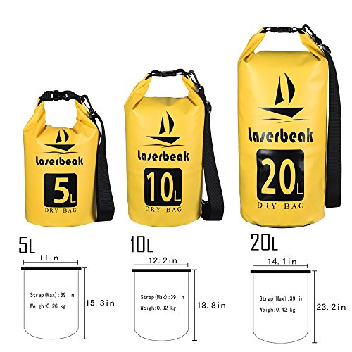 アウトドア防水ドライバッグLaserbeak - 旅行用ラッピングボートカヤック用サックギア収納袋カヌーキャンプスノーボード (黄, 20L)