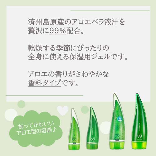 ひんやりとした感触と、天然保湿成分のアロエエキスは、お肌を引き締めながらしっとりとした潤いを保ちます。もちろんお顔にも使えますが、重度の日焼けや、やけどした際の冷却、塗った後痛みを伴う場合には使えませんのでご注意ください。