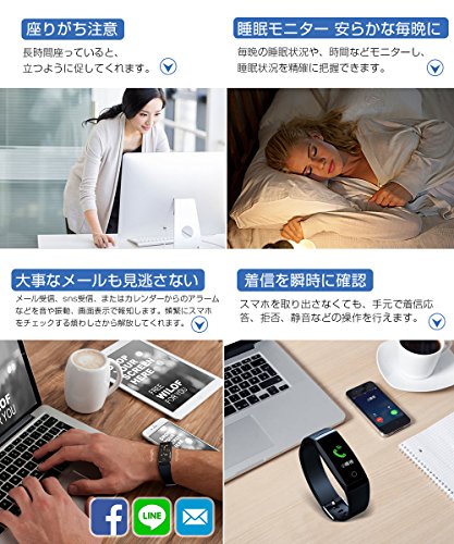 itDEAL 改良版 IP67防水 スマートウォッチ 血圧計 心拍計 歩数計 スマートブレスレット 睡眠検測 アラーム 多機能 着信電話通知 line通知 iPhone/iOS/Android 日本語対応 (purple)