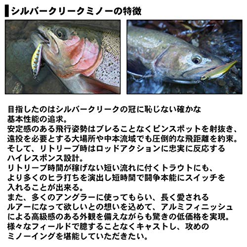 キレのあるアクションを発生することが得意なヘビーシンキングミノーです。キャストしてからの立ち上がりが早く、こちらのロッド操作を敏感にキャッチして、水中でアクションを繰り広げます。またバランスも良いため少々の水流ではバランスを崩すことがなく、魚を誘ってくれる頼もしいシンキングミノーです。