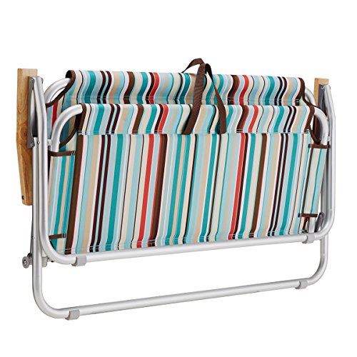 先ほどご紹介したロゴスチェアfor2のおしゃれなストライプバージョン。季節によって色違いで揃えたくなります。こちらも人気が高いアイテムです。大人2人が座るには十分なソファ。キャンプだけでなく、室内のインテリアとしてもおしゃれですね。特に女性キャンパーに人気の1脚です。