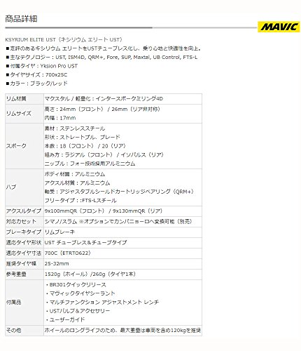 ◆定評のあるキシリウム エリートをUSTチューブレス化し、乗り心地と快適性を向上。●主なテクノロジー:UST, ISM4D, QRM+, Fore, SUP, Maxtal, UB Control, FTS-L●付属タイヤ:Yksion Pro UST(イクシオン プロ UST)■タイヤサイズ:700x25C■カラー:ブラック/レッド