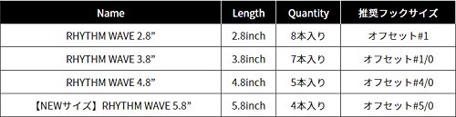 リズムウェーブ全4種類をまとめてご紹介!追加サイズの5.8インチが登場したことで、フィネスからパワフルな釣りまで遊べるようになりました。各サイズともノーシンカーで十分キャストできる重さで、表層付近を泳がせる釣りにマッチします。お持ちのタックル、フィールドのベイトサイズに合わせて、リズムウェーブのサイズを選んでみましょう!