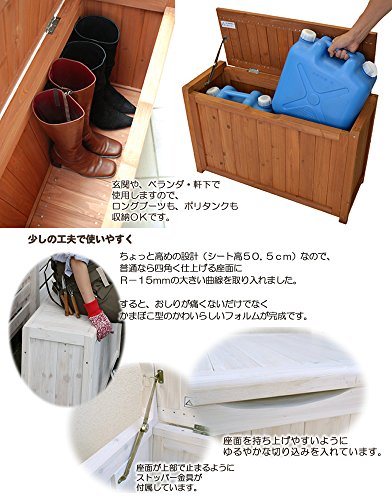 木製ベンチのDIYキットを買えば材料を買いに行かなくても木製ベンチを手作りできます。このDIYベンチは収納を兼ねていて座面下に灯油ポリタンクが2つ入る大きさがあり、ベランダや庭で収納件長椅子として活用することができますね。