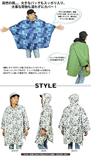 アウトドア好きなメンズのファッションとしても軽快なカラーリングのポンチョで、どういったアウトドアでもおしゃれ度が高いまま遊べることでしょう。パンツスタイルにもマッチしやすいシンプルなおしゃれポンチョですので、大人のメンズスタイルを演出できます。