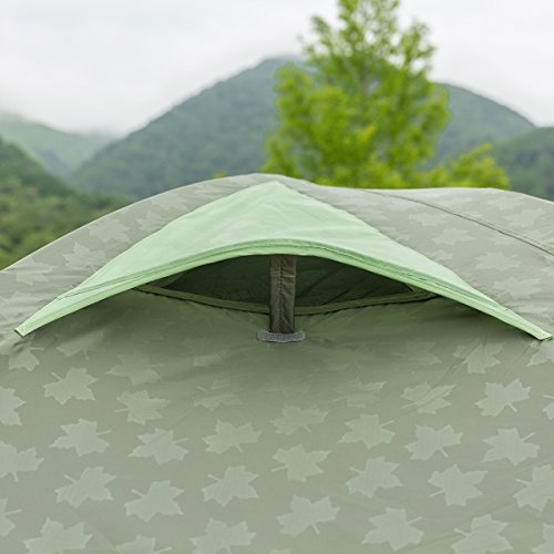 ワンポールテントを2つくっつけた、ツールームと言うかツーポールと呼ぶべきか悩みますが、ダブルティピーテントです。2つの居住空間を確保し、テントの張り方も簡単で、アウトドア女子に人気のテントです。また中央のパネルを跳ね上げれば広い全室を作ることもできるので、アウトドアでのパーティーにぴったり。収納定員はおよそ4名で、家族や仲の良い友達とのキャンプにおすすめのティピー型テントです。