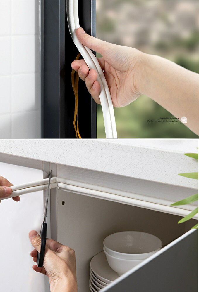 この商品は、キッチンやトイレの便器の隙間に使える隙間テープです。このテープは伸び縮みするので、キッチンでも、丸い形のトイレの便器部分でも楽に使用することができますよ。