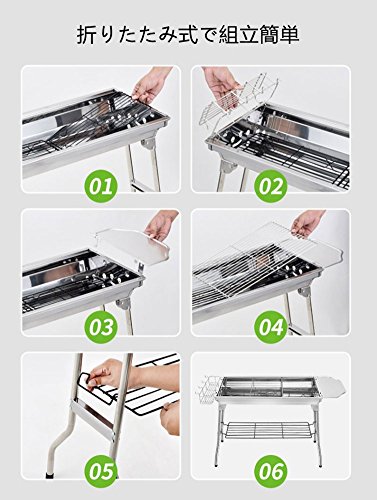 6〜8名で活用する事が可能な折りたたみ式BBQコンロになります。錆びに強い素材のステンレスを採用していて、難しい工程などは一切なく、ガイドを見なくともシンプルな手順で簡単に組み立てられます。
